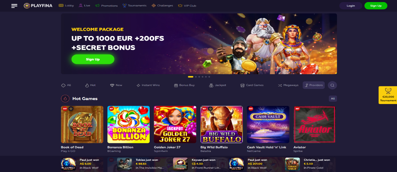 To start playing your favorite games at Playfina, you must create a personal account. After that, you can access all the site's functionality Playfina Casino - Setting the Bar Higher in the Gambling Industry! Playfina Casino Review - No Deposit, Free Spins And Best Playfina Casino How to Start Up to 1000€ + 200 FS + Secret Bonus!!! You instantly get presented with the casino's primary services and listed games, as well as its live casino section...