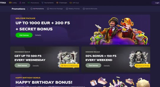 To start playing your favorite games at Playfina, you must create a personal account. After that, you can access all the site's functionality The Complete Manual for Maximizing Your Gaming Adventure - Unveiling the Playfina Bonus and Enhancing Your Ultimate Gaming Experience.! Playfina Casino Review - No Deposit, Free Spins And Best Playfina Casino How to Start Up to 1000€ + 200 FS + Secret Bonus!!! You instantly get presented with the casino's primary services and listed games, as well as its live casino section...