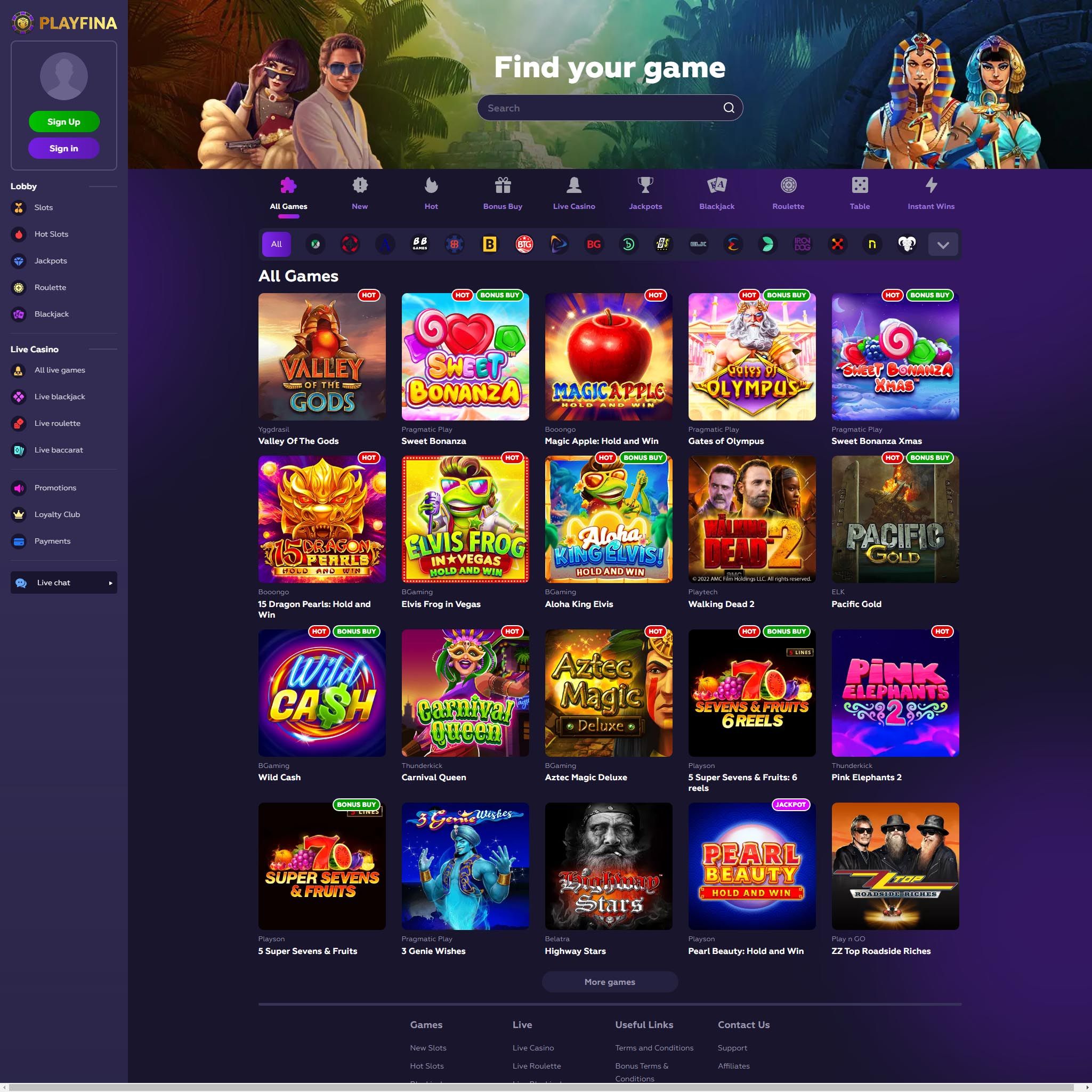 Playfina Casino offers a wide variety of slot games, including classic slots, video slots, progressive jackpot slots, and themed slots.